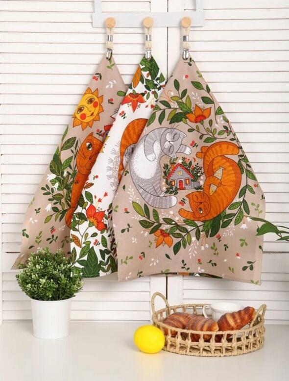 Красивые и яркие полотенца для кухни! Фартуки для хозяек штучно или в кухонных наборах порадуют Вас или того, кому достанется в подарок такой красивый кухонный набор!
