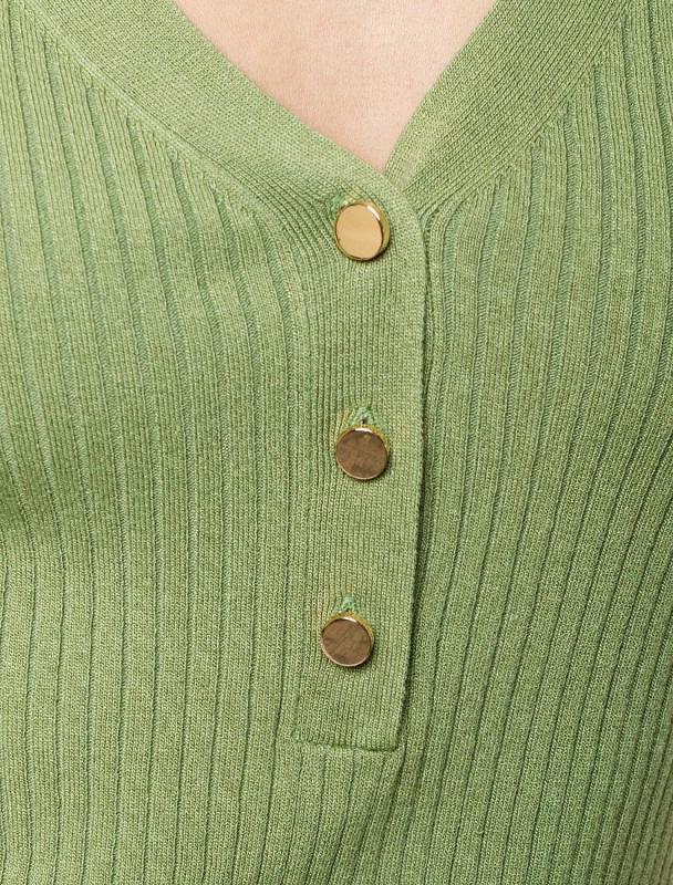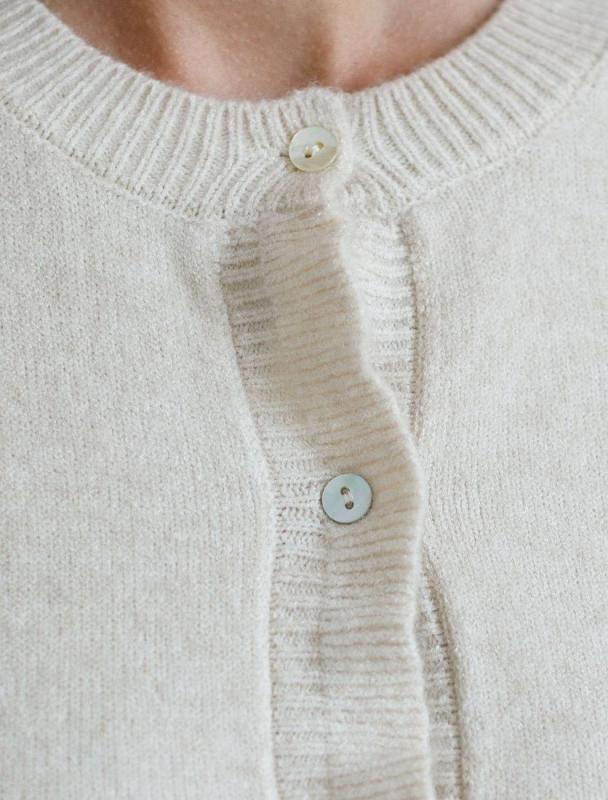 Жакет тонкой вязки выполнен из вискозы с нейлоном. Модель с V- вырезом дополнена золотистыми пуговицами и фирменным металлическим логотипом бренда. Мягкая пряжа приятная к коже позволяет носить изделие как первый слой, а также рекомендуем использовать как кардиган в многослойных образах поверх топа или платья.