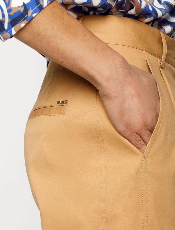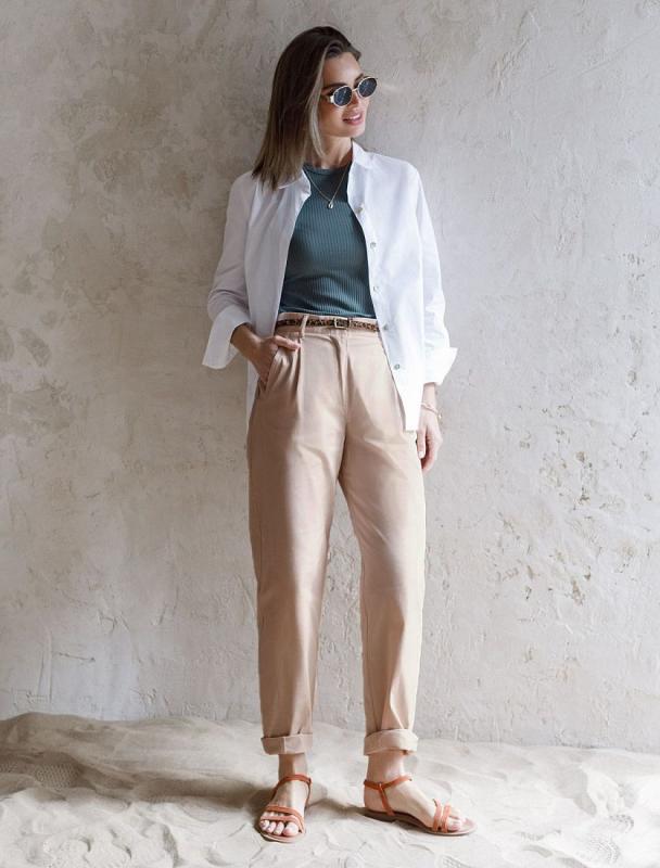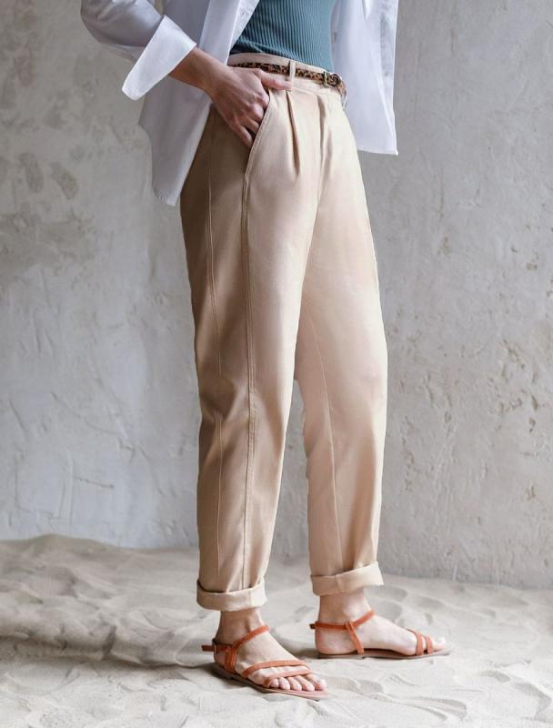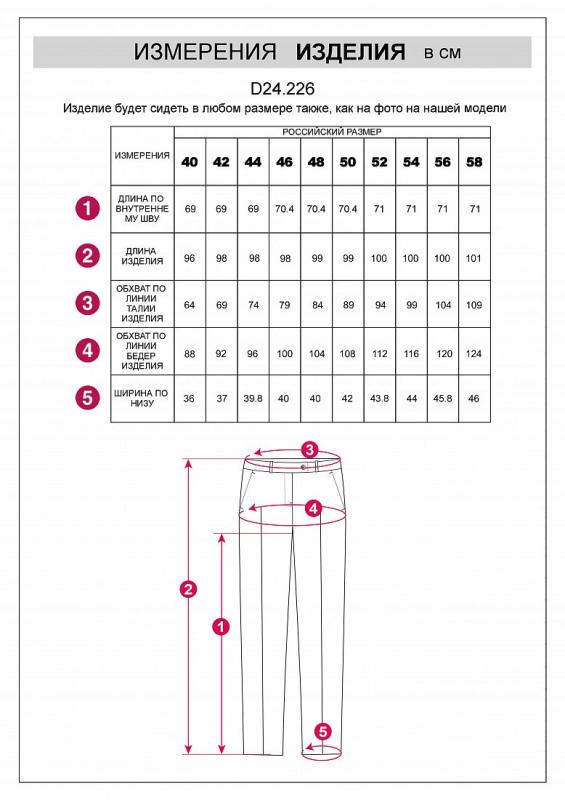 Брюки-дудочки выполнены из струящегося лиоцелла. Добавление синтетических волокон в составе изделия предотвращает сминаемость. Эластичный пояс на резинке дополнительно регулируется шнурком с золотистыми наконечниками. Изделие дополнено боковыми карманами и одним карманом в рамку сзади. Декоративный гульфик выдерживает классический стиль. Сочетаются абсолютно с любым верхом, и любой обувью. В костюме с топом D23.100, блузкой D29.775 и D29.774