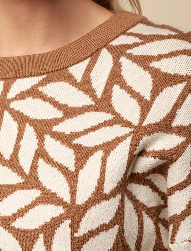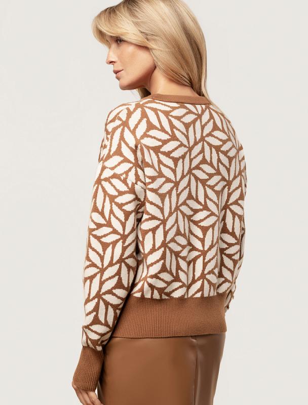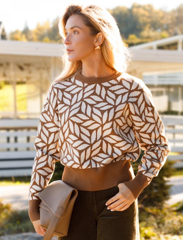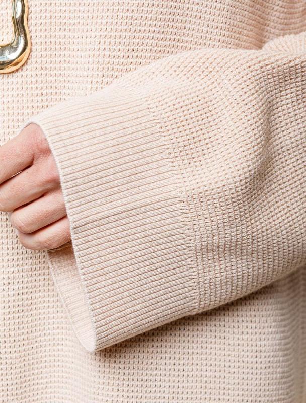Свитер выполнен из хлопковой пряжи крупной резной вязки. Мягкая фактура свитера очень комфортная к телу, абсолютно не колется и позволяет носить изделие даже на голое тело. Добавление акрила в состав изделия способствует шелковистости и дополнительному теплу. Трендовый геометрический узор отлично впишется в осенне-зимний гардероб.