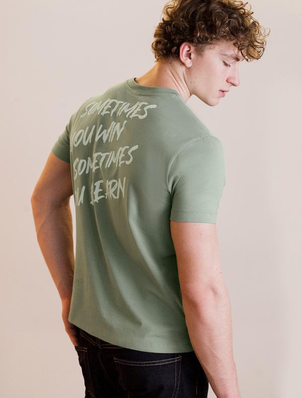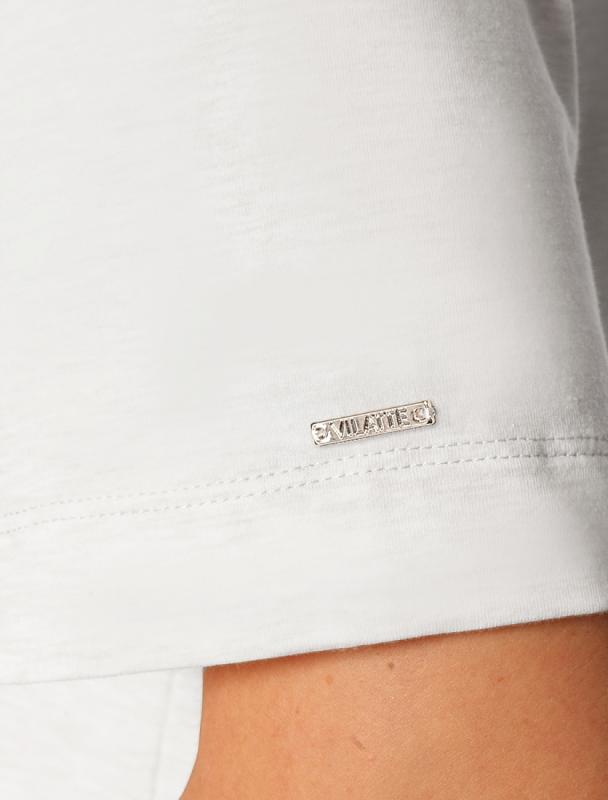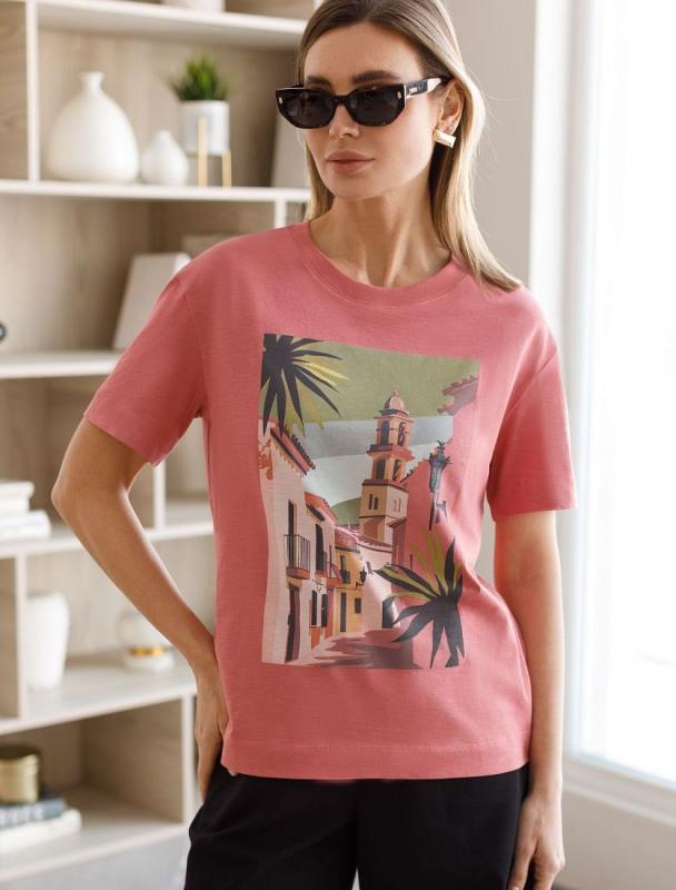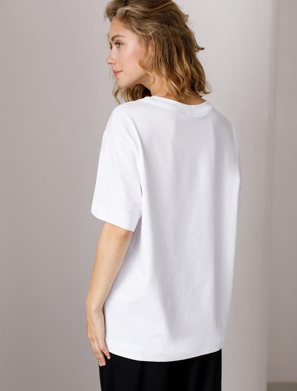 Перевод принта: Craft your dreams, art studio - стань скульптором своей мечты. Футболка свободного кроя со спущенным плечом выполнена из футера двухнитки с эластаном. Лаконичный принт нанесен фактурной краской. Эластичный материал гарантирует комфорт и формоустойчивость. Сочетается в костюме с брюками D44.138, D44.139 и шортами D48.008. Изделие дополнено металлическим логотипом бренда.