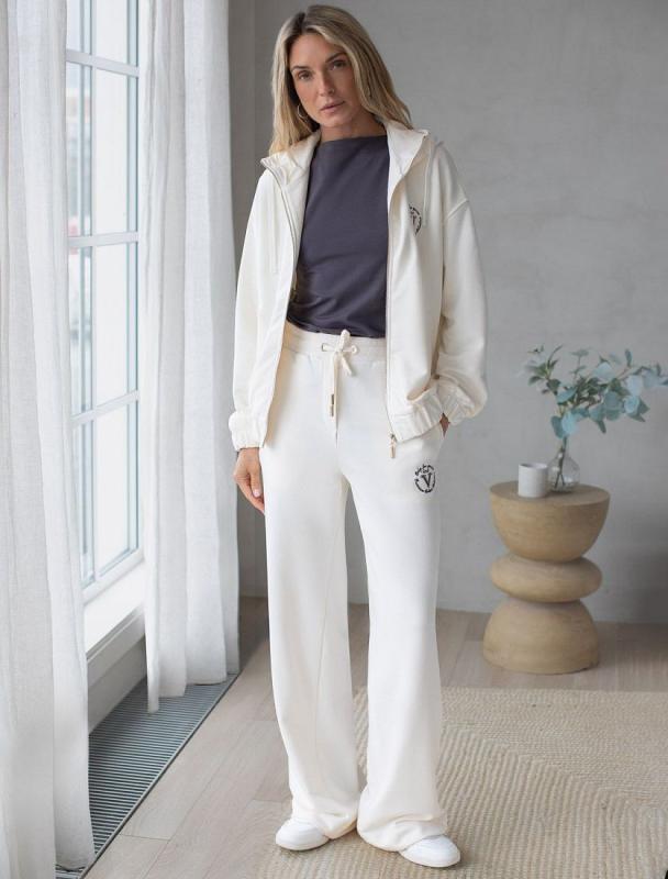 Брюки-дудочки из футера двухнитки. Эластичный пояс на резинке и посадка на талии регулируется шнуром из 100% хлопка. Модель дополнена двумя боковыми карманами. Украшена металлическим логотипом бренда. Совет стилиста: данную модель можно сочетать с любой обувью. И носить в комплекте с худи D49.911, свитшотом D49.902 или D49.913