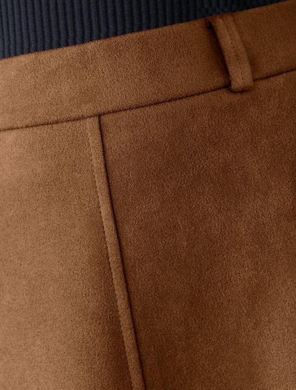 Брюки прямого кроя выполнены из мягкого эластичного бархата. Модель черного цвета с посадкой чуть ниже талии дополнена удобными боковыми карманами и шлевками на поясе. Кроме вечернего наряда с сияющим верхом и босоножками, также можно создать повседневный образ с рубашкой, лонгсливом, футболкой, жакетом и лоферами.