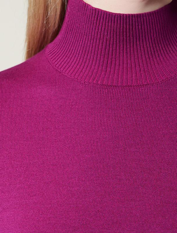 Водолазка выполнена из фактурного трикотажа в широкий рубчик. Модель с узким рукавом хорошо сидит по фигуре, подчеркивая достоинства. Полотно слаборастяжимое, рекомендуем брать изделие четко в соответствии с размером, а кто любит чуть свободнее — то на размер больше. Хлопковый трикотаж поддерживает оптимальную температуру тела, поэтому в изделии будет комфортно в течении всего дня. Наличие эластана в составе гарантирует формоустойчивости. Водолазка отлично впишется в деловой дресс-код и подойдет для повседневного аутфита.