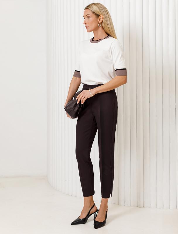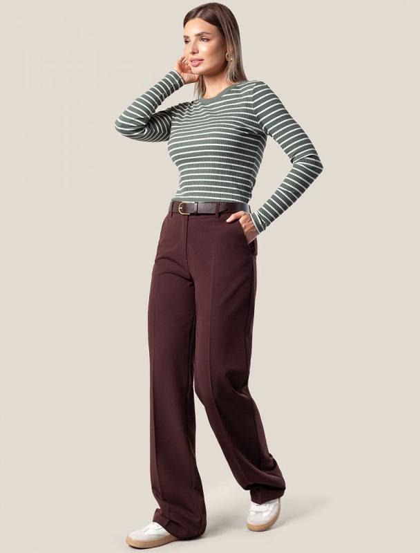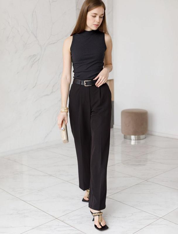 Брюки прямого кроя с – универсальный предмет весеннего гардероба. Высокая посадка и стрелки зрительно увеличивают рост и визуально стройнят. Ткань брюк: поливискоза с эластаном, гарантирует непревзайденный комфорт и формоустойчивость, хорошо тянется и не мнется. В таких брюках будет комфортно даже летом, благодаря наличию вискозы в ткани. Тело будет всегда дышать. Классическая длина отлично сочетается с обувью в любом стиле и подходит всем типам фигуры.