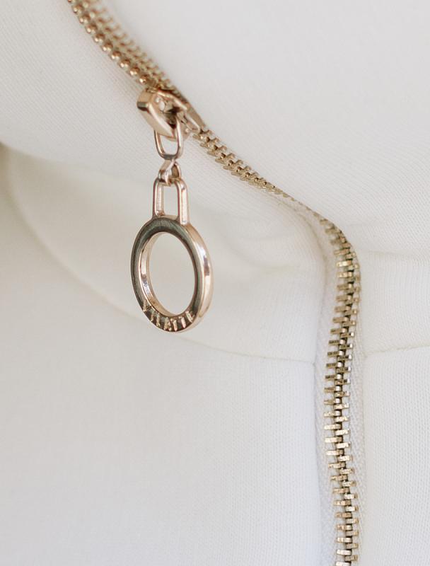 Жакет выполнен из футера двухнитки с эластаном. Модель без карманов с воротом стойка и застежкой на молнию золотистого цвета. Эластичный материал гарантирует комфорт и формоустойчивость. Сочетается в костюме с брюками D44.138, D44.139, D44.140 и шортами D48.008. Изделие дополнено металлическим логотипом бренда.