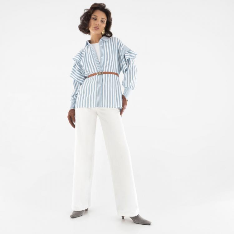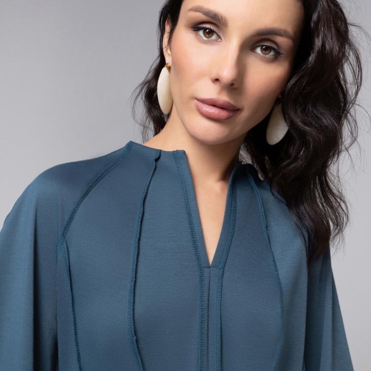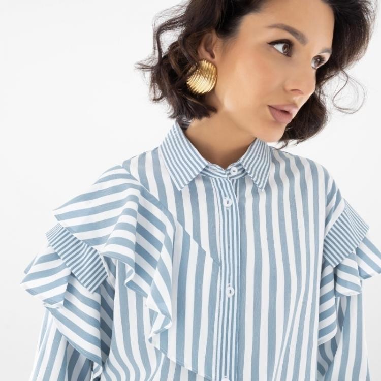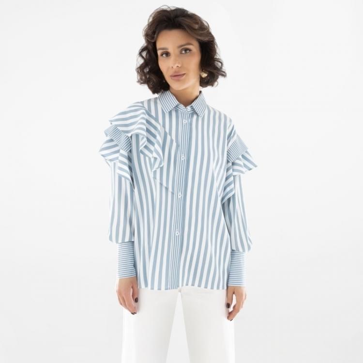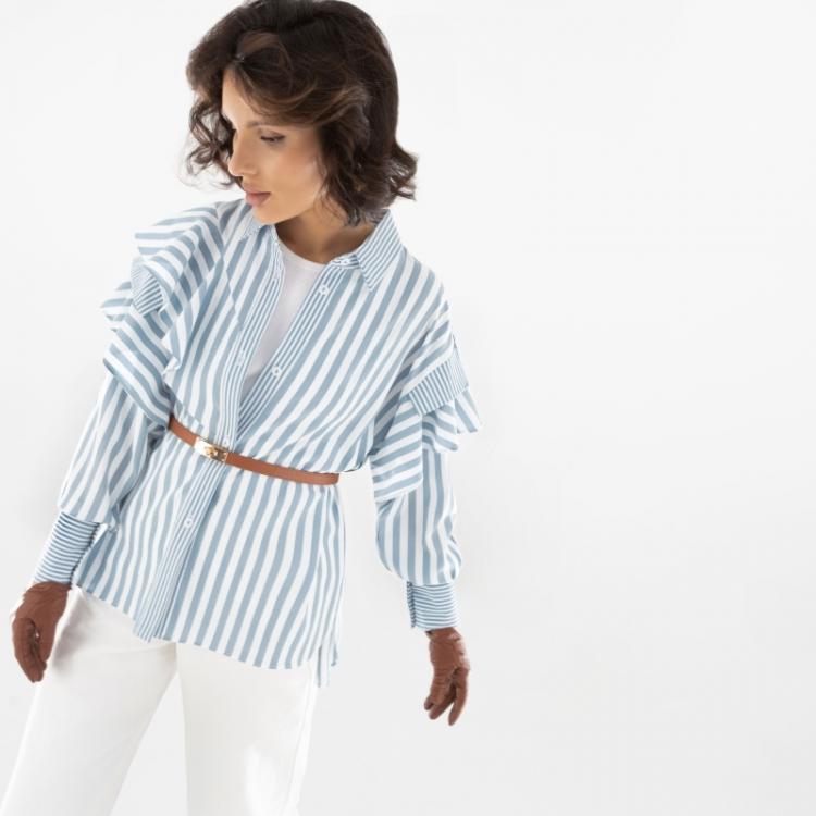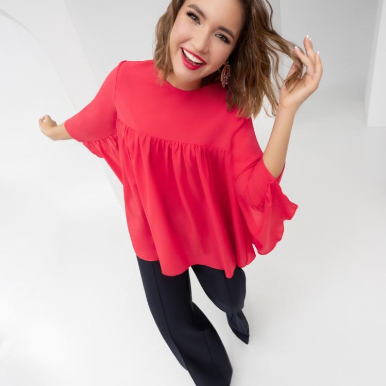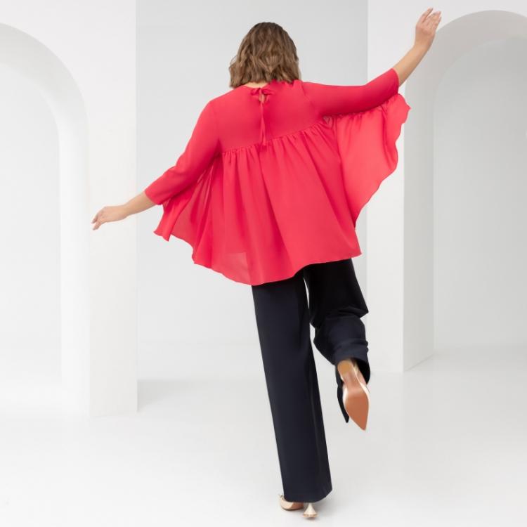Блуза с летящим силуэтом, как будто сотканная из облака. Эффект лёгкой ткани, рукава «летучая мышь», всё работает на вас. Образ получается хрупким и романтичным. Цвет также играет на руку.