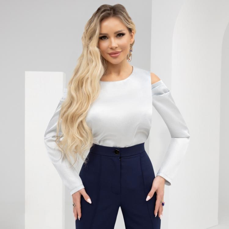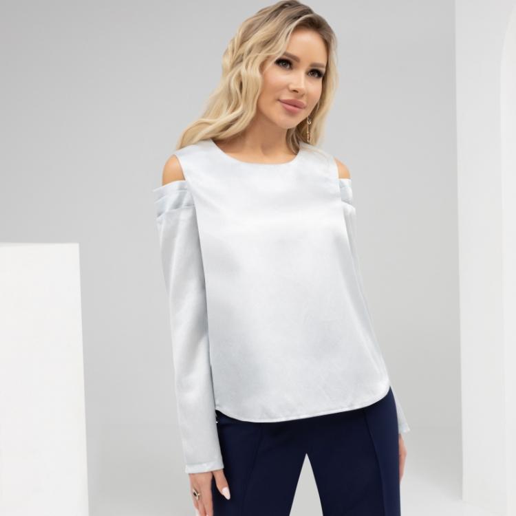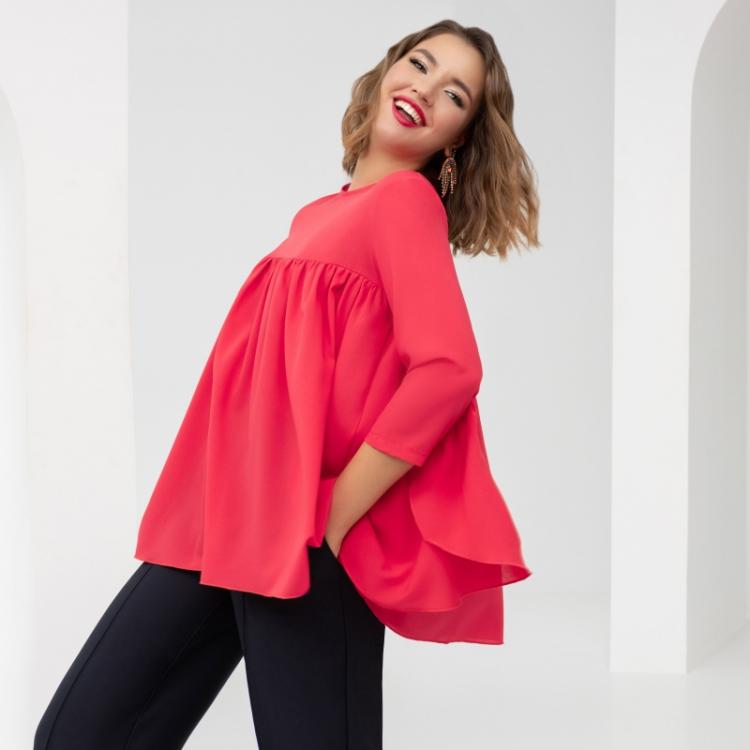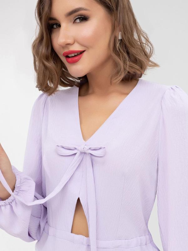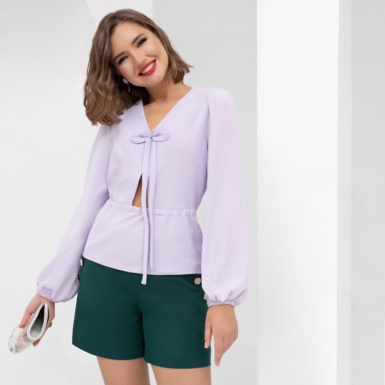 Блуза из легчайшей современной ткани с трендовой асимметрией по низу. Легкий оттенок лаванды как-будто издает ароматы весны и тепла. Отличный выбор на жаркий день! Рекомендуем дополнить образ светлыми брюками или юбкой.