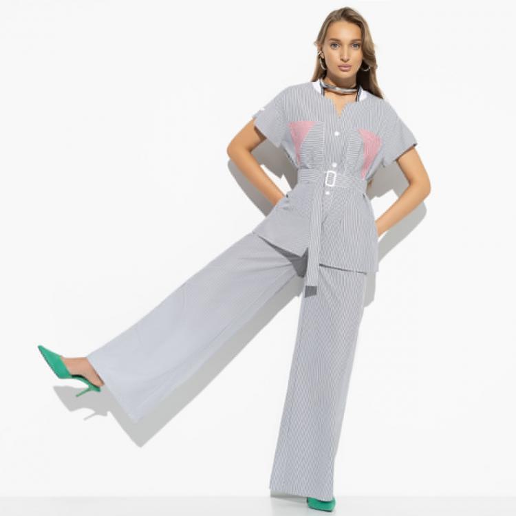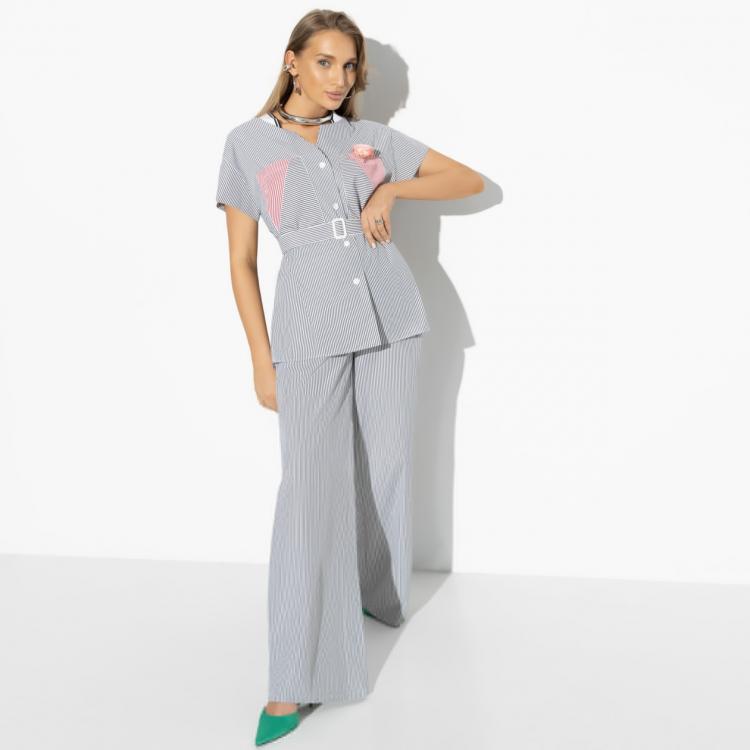Состав: Костюмная ткань «полоска» (60% полиэстер, 37% вискоза, 3% спандекс)