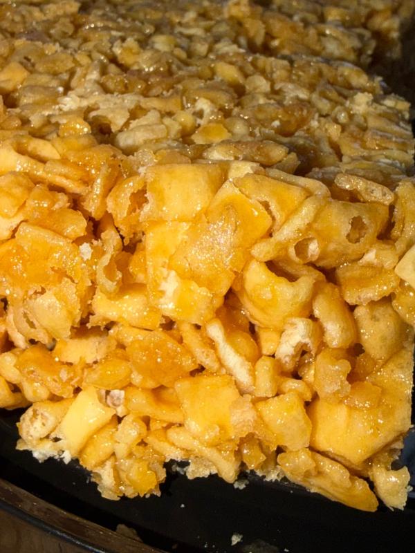 мука пшеничная хлебопекарная вс, сахар белый, ядро подсолнечника очищенное, патока, заменитель молочного жира(рафинированные дезодорированные растительные масла в натуральном и модифицированном виде в том числе соевое, антиокислитель (Е321)), вода питьевая, ядра грецкого ореха, меланж яичный, корица молотая, дрожжи хлебопекарные , регулятор кислотности - лимонная кислота. **Внимание!** Продукт содержит: пшеничный, яичный белки, орехи, продукт переработки сои. Может содержать следы кунжута, арахиса молочного белка.