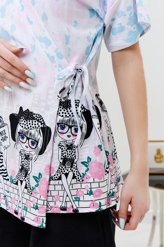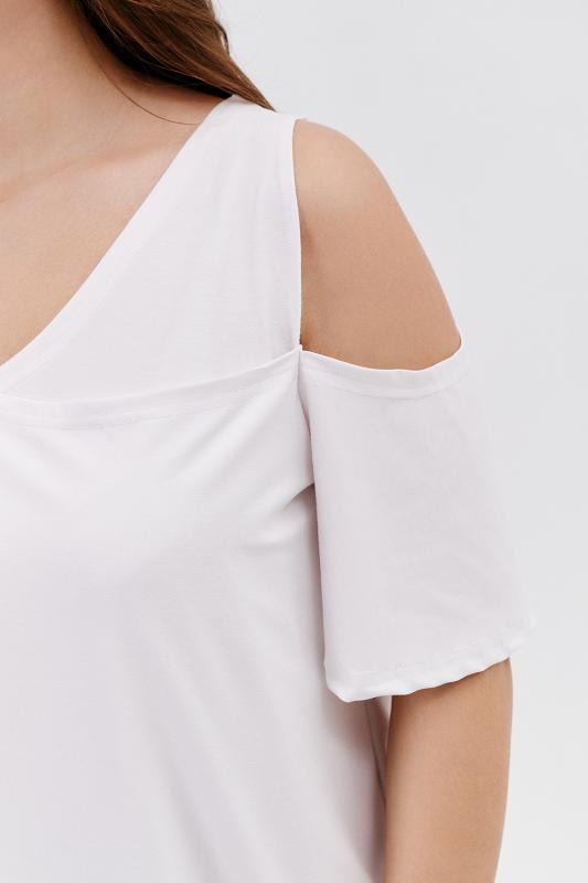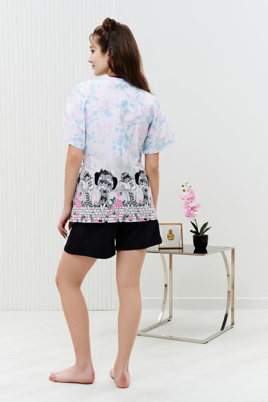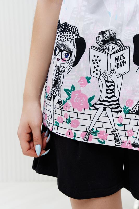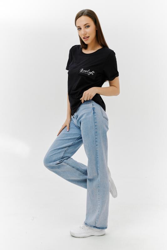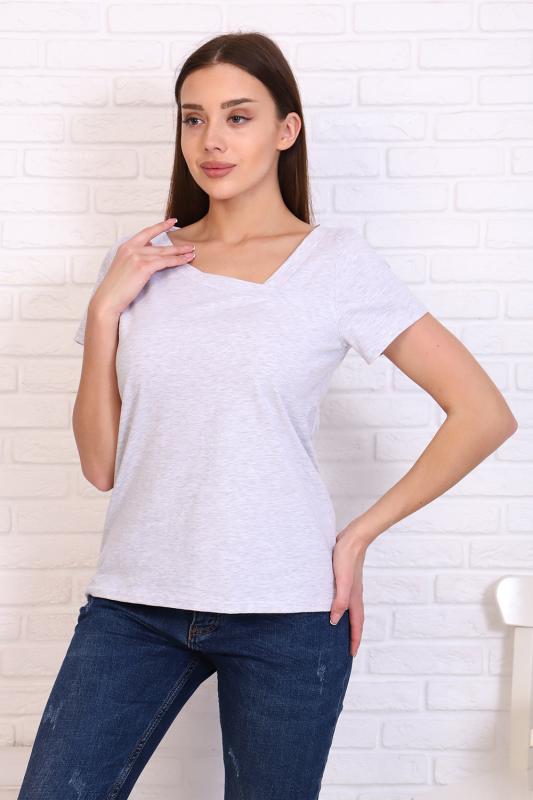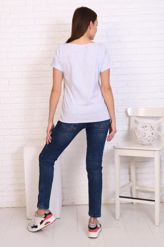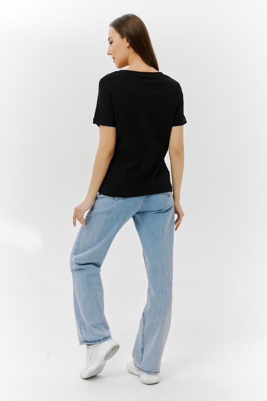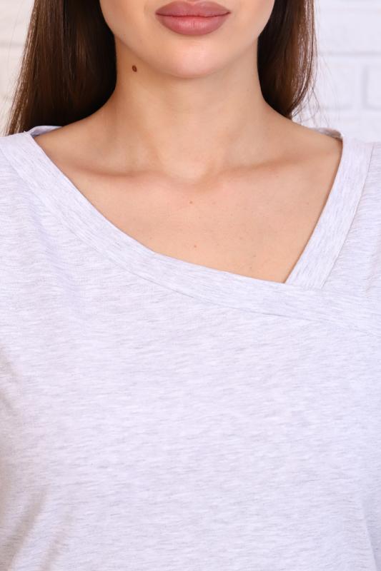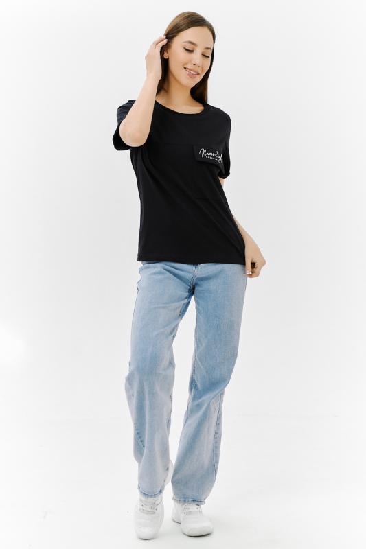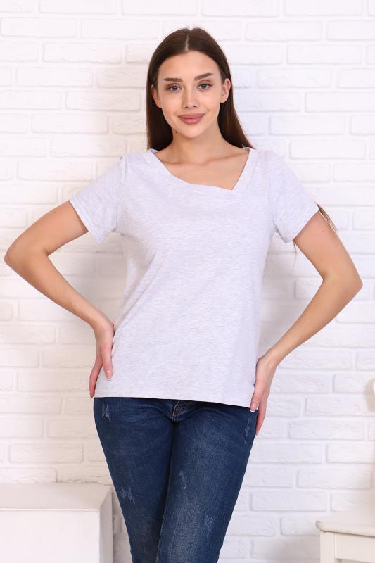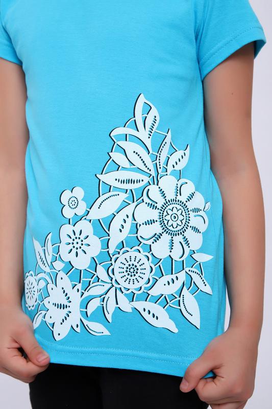 Футболка прямого силуэта, с округлой горловиной, длиной до середины бедра. Рукав втачной, короткий. Горловина обработана обтачкой из основного полотна.