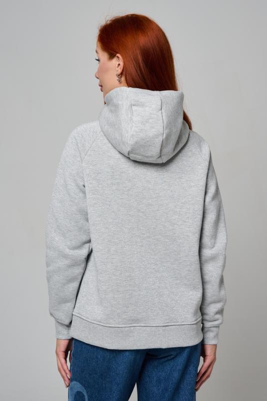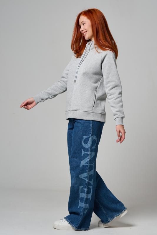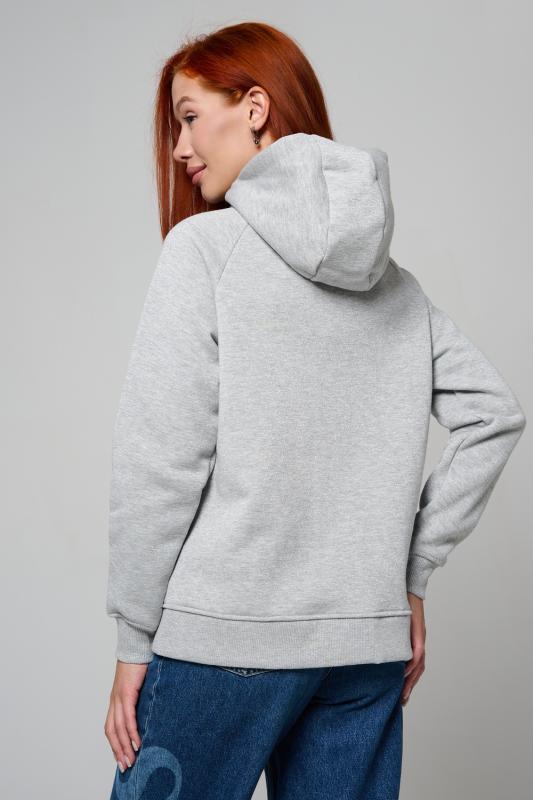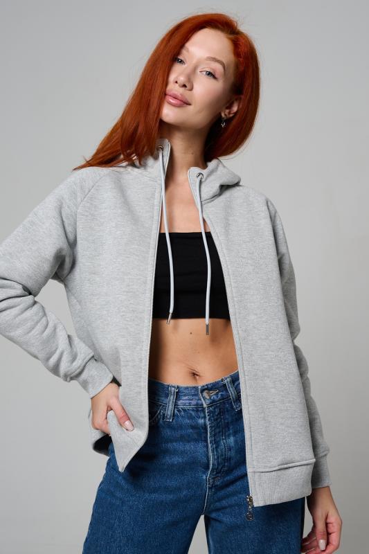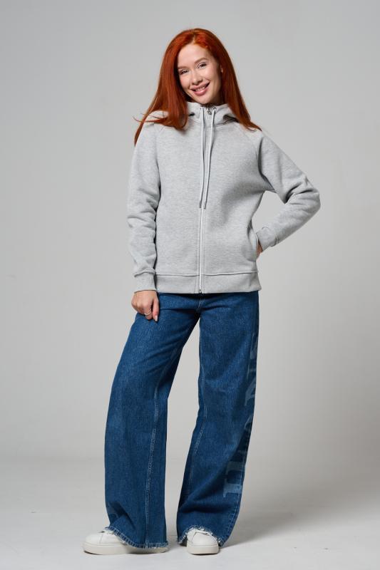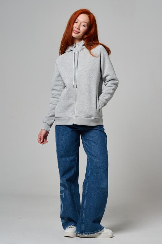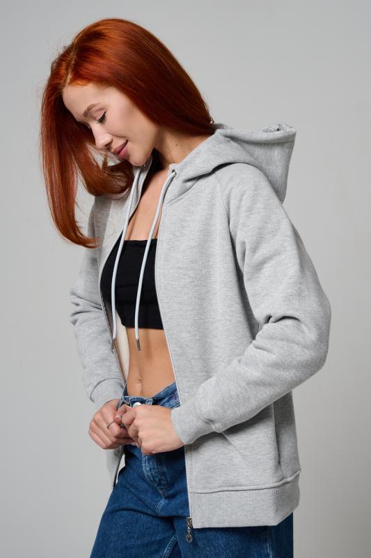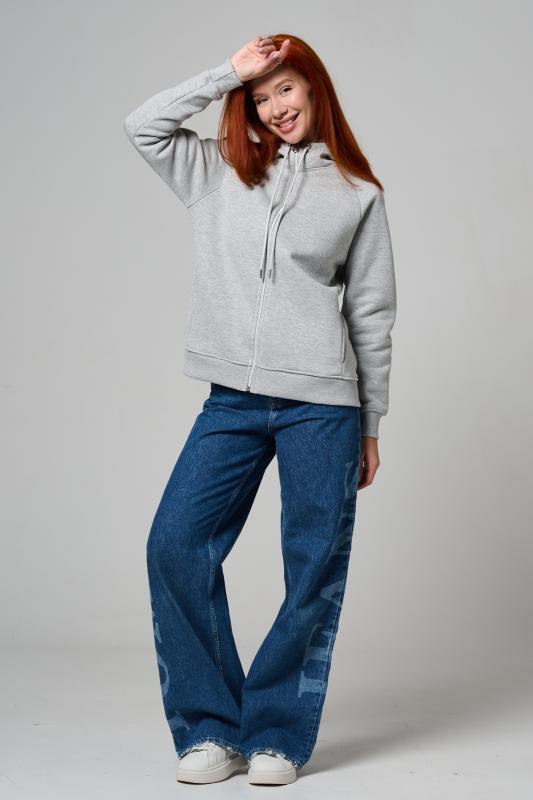 Толстовка прямая, с капюшоном, на молнии. Рукав реглан, длинный. На полочке в рельефном шве обработаны карманы. Низ толстовки и манжеты рукавов выполнены из эластичного полотна.