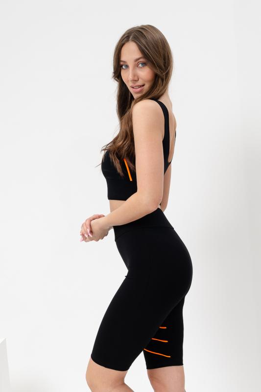 Велосипедки спортивные женские с ярким кантом, с широкой эластичной резинкой.
