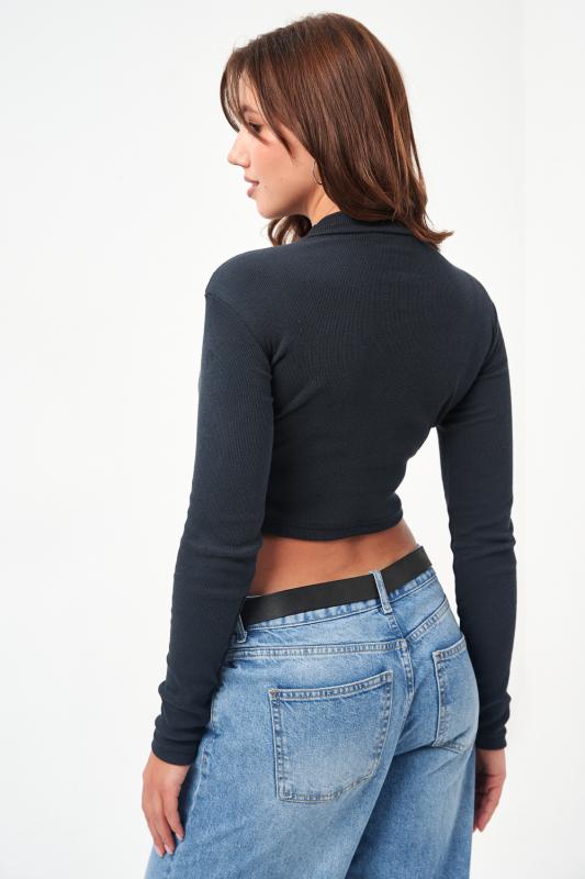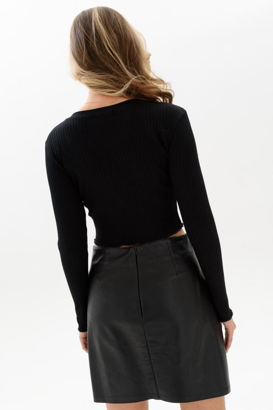 Стильный кроп-топ с длинным рукавом, имеющий фактуру в рубчик - это женский супер хит сезона! Необычный, короткий топик прилегающего кроя выполнен из мягкой, приятной к телу трикотажной ткани лапша. Молодежная модель топа прекрасно впишется в гардероб и поможет создать множество стильных образов. Топ сочетается с одеждой в спортивном, офисном и праздничном стилях. Модный кроп-топ носите с юбкой, джинсами, спортивными брюками. Ткань обладает хорошей растяжимостью.