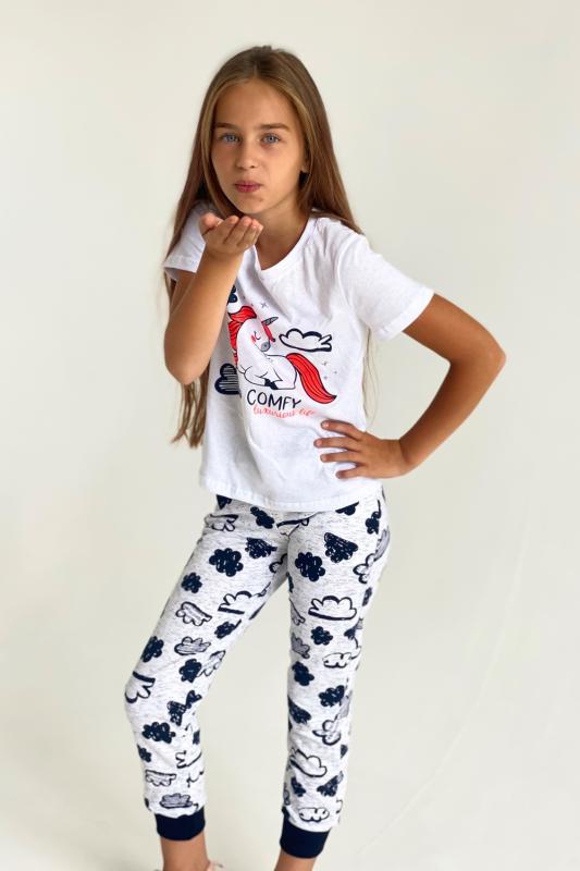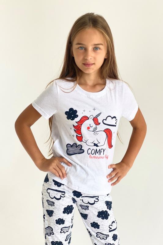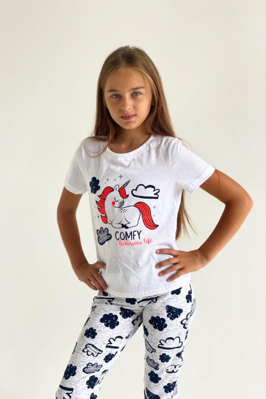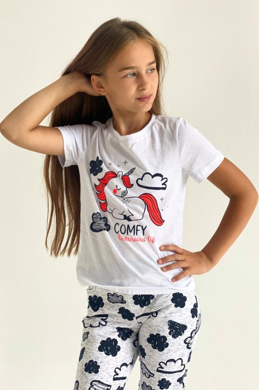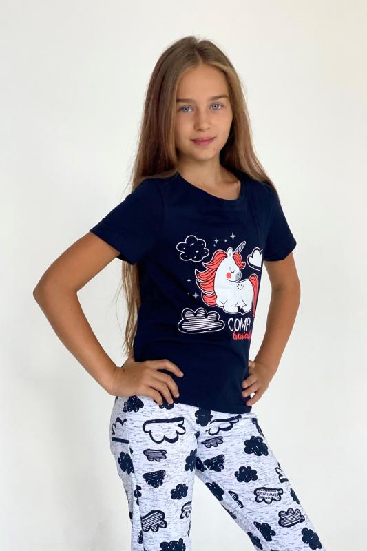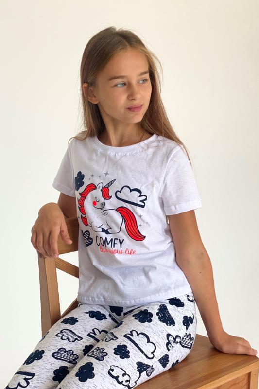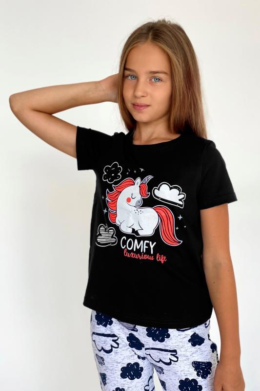 Футболка детская с коротким рукавом. Горловина с круглым вырезом, на полочке принт.