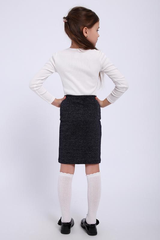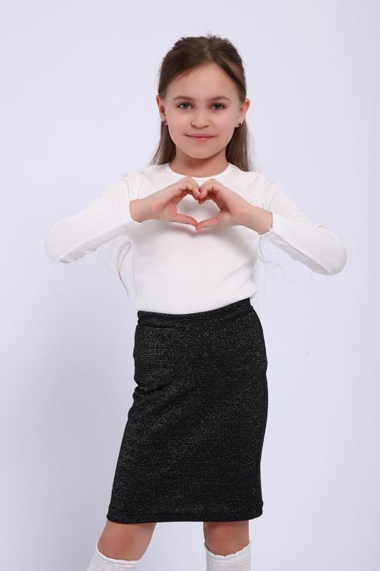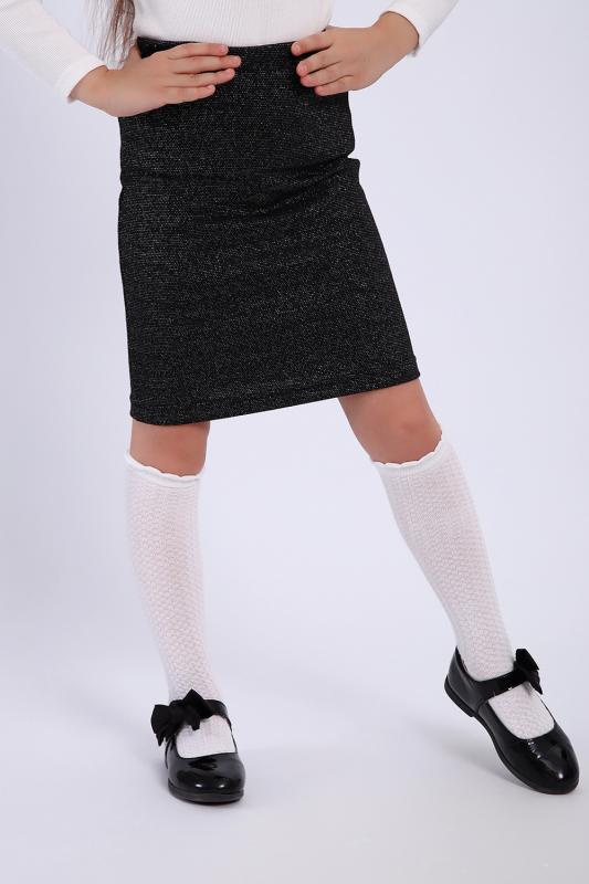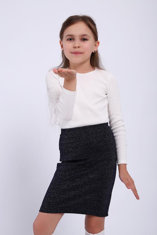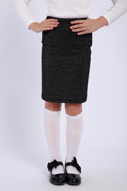 Трикотажная юбка из мягкой ткани с блеском для маленьких модниц. Идеально подойдет для школы и детского сада. Крой прямой, заужен книзу, на эластичном поясе.