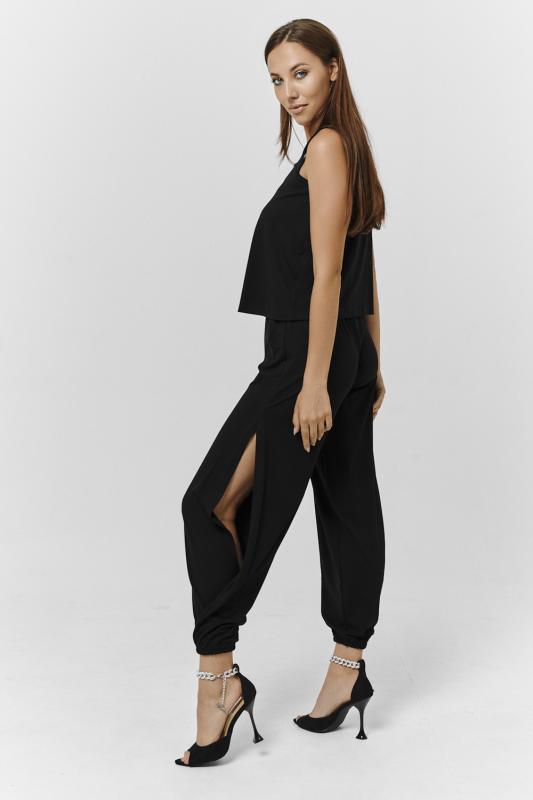 Женские брюки в боковых швах разрезы.