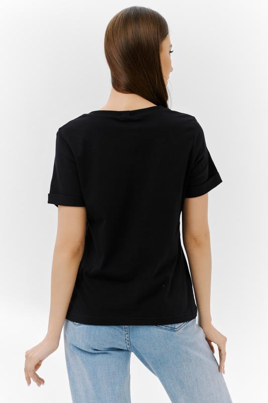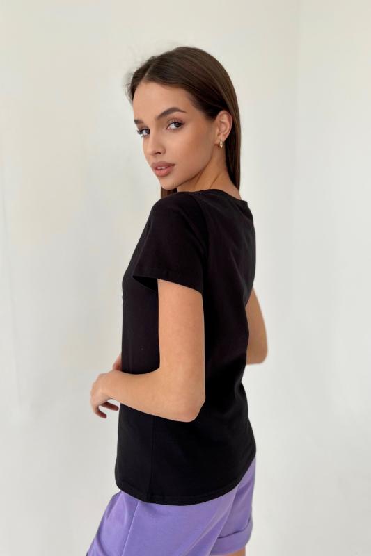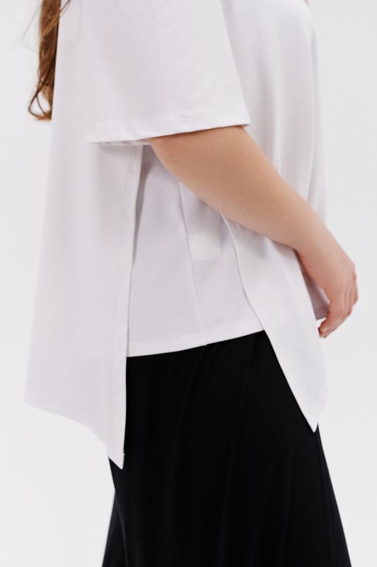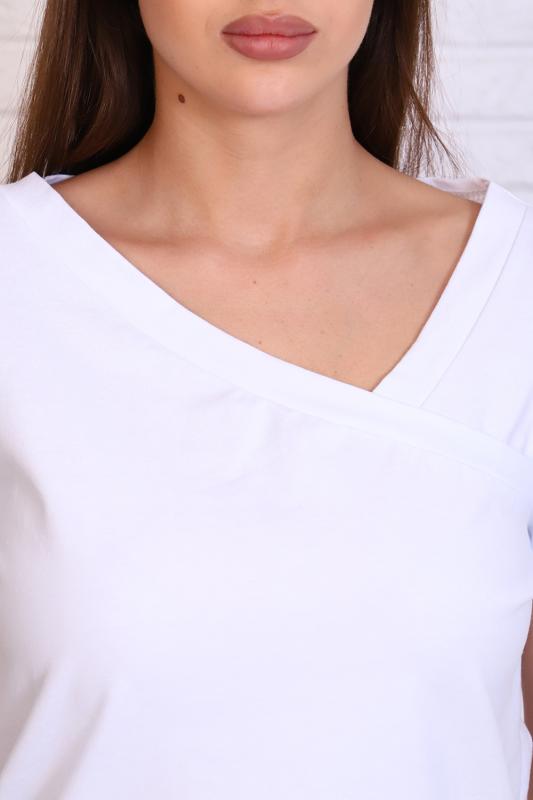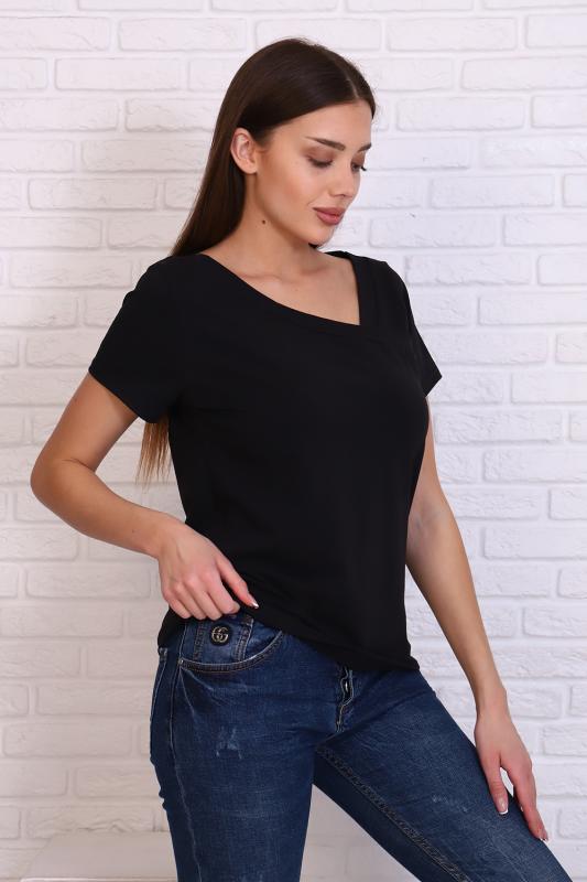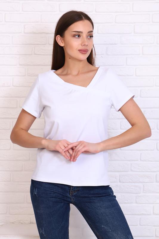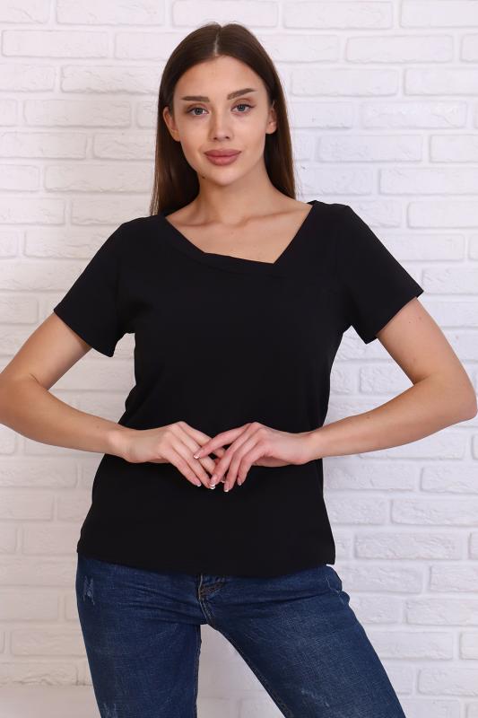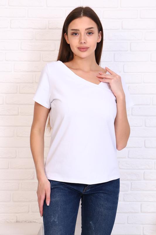 Стильная футболка из кулирки с лайкрой качества пенье, мягкая, приятная к телу. Модель свободного кроя, втачной короткий рукав, фигурный вырез горловины придаёт изделию особенную изюминку. Футболка - это базовая комфортная вещь женского гардероба, очень практичная и удобная, не сковывает движения, позволяет женщине всегда оставаться уникальной.