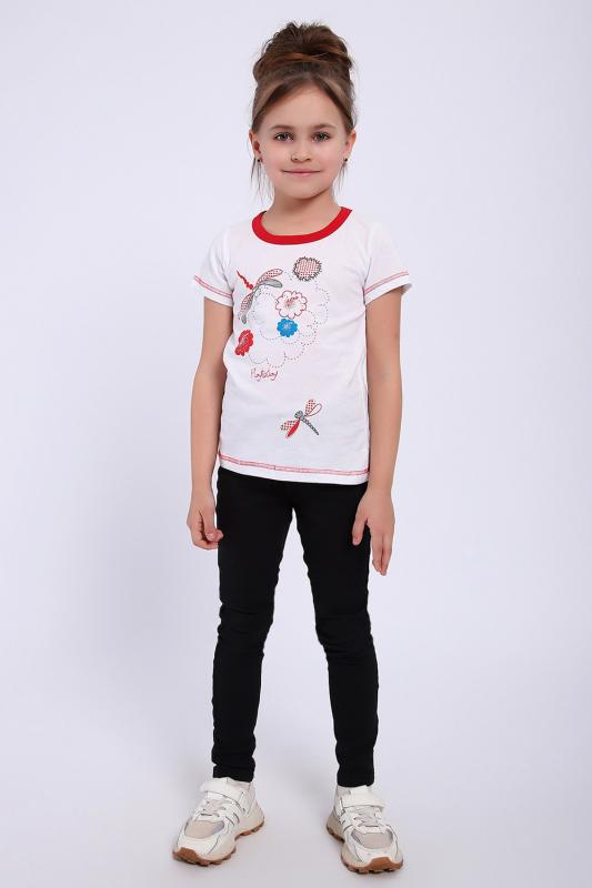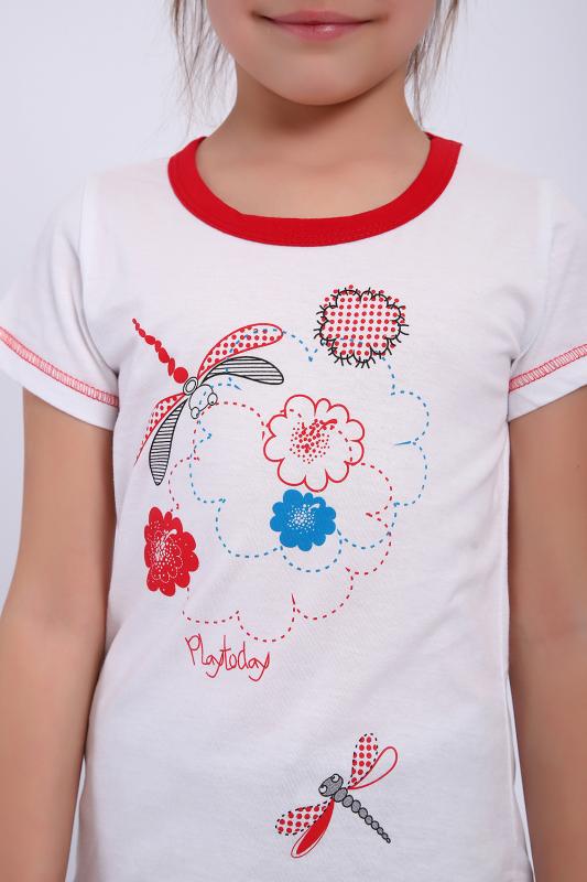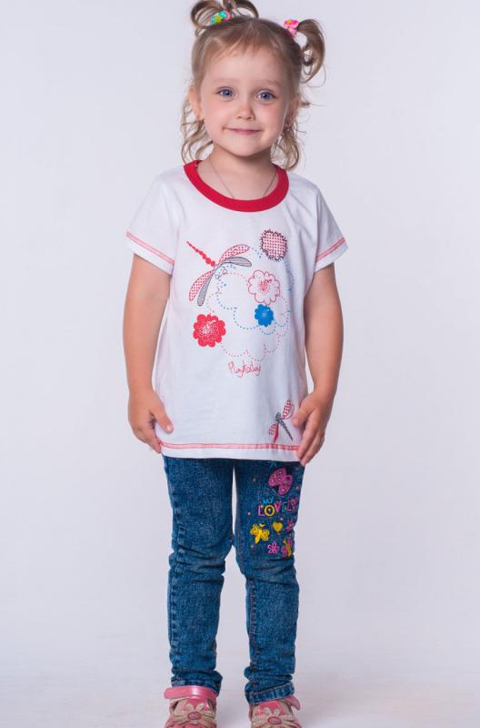 Футболка для девочки. Натуральны хлопковый трикотаж. Стрекозы на белом фоне.