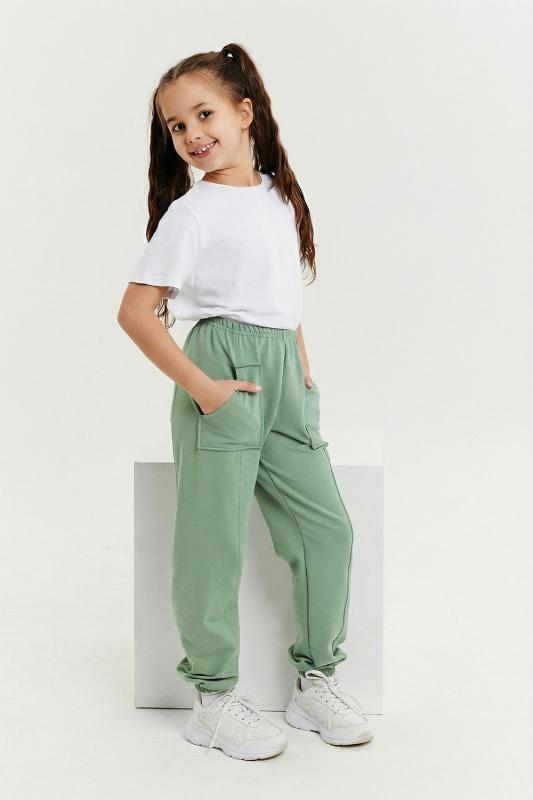 Брюки детские из футера с накладными карманами.