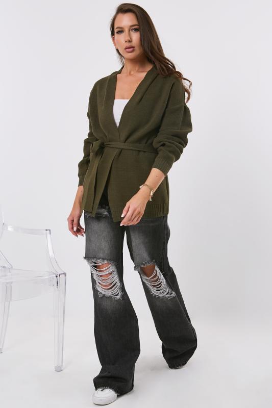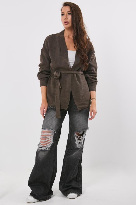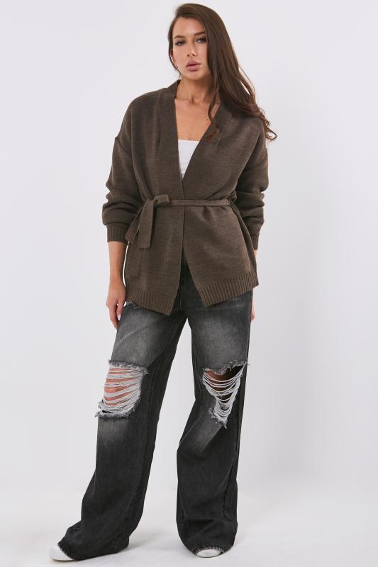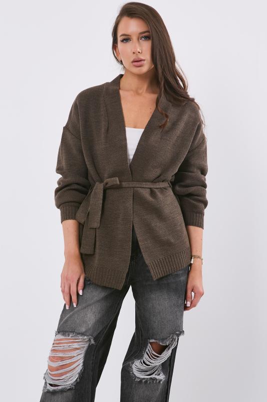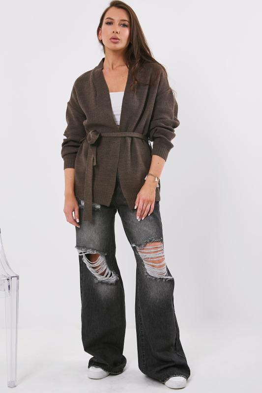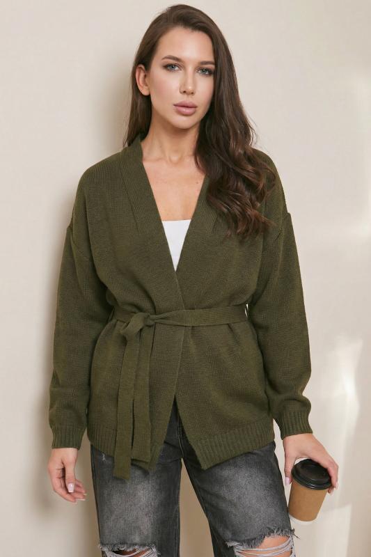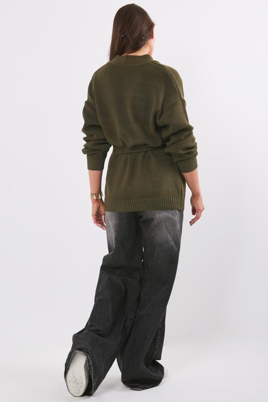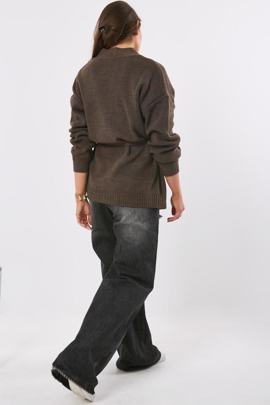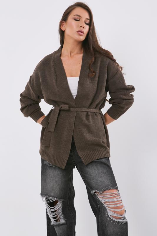 Особенности: Обьемный кардиган без застежки. Пояс на шлевках.