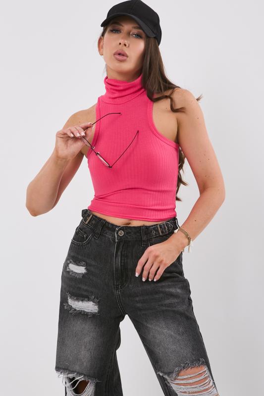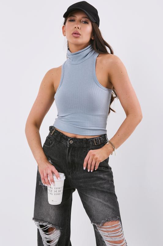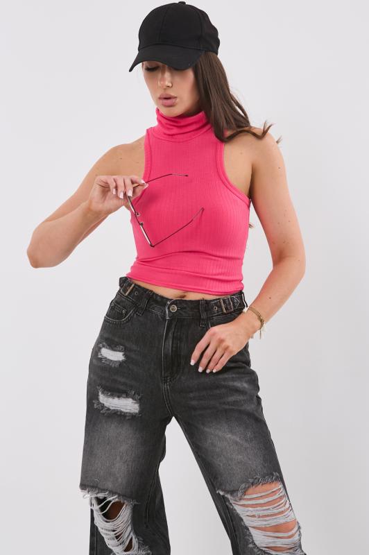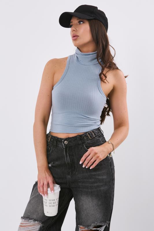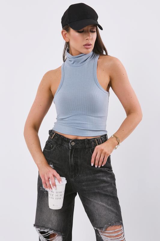 • Особенности: Топ из трикотажа с воротником стойка