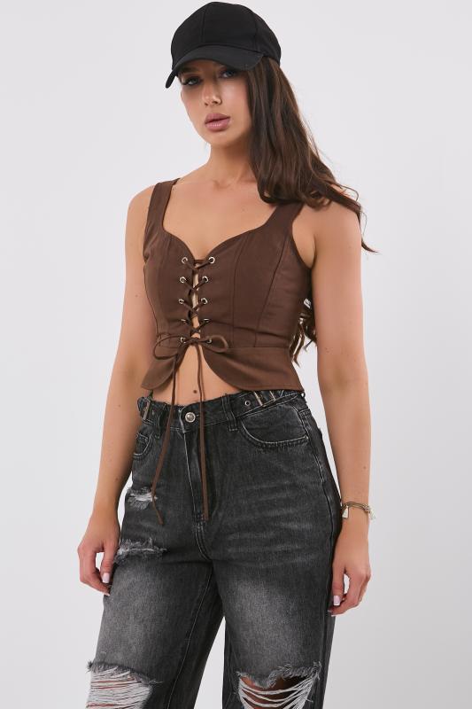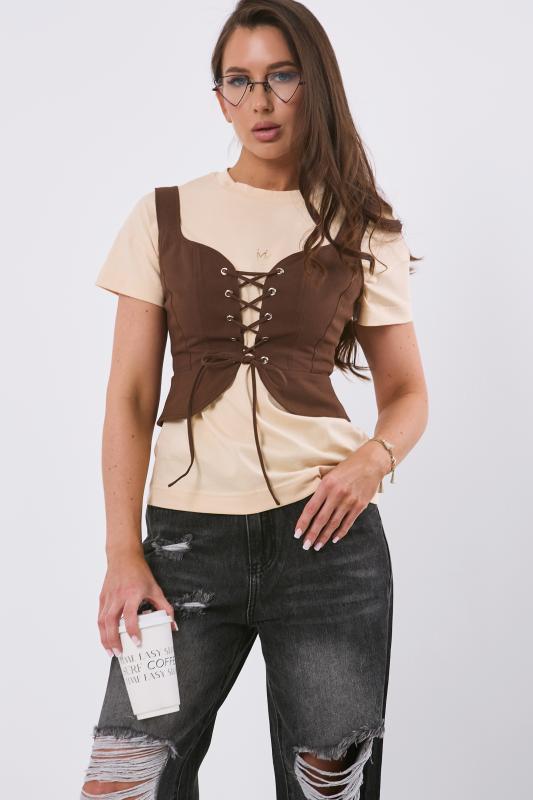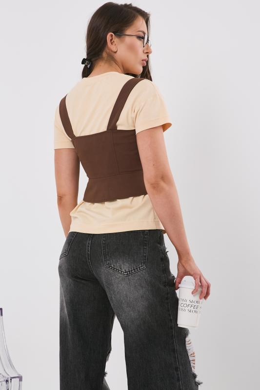 • Особенности: Топ из эластичного трикотажа прилегающего силуэта, в верхней части топ на подкладке. В корсетных линиях переда декоративные молнии.