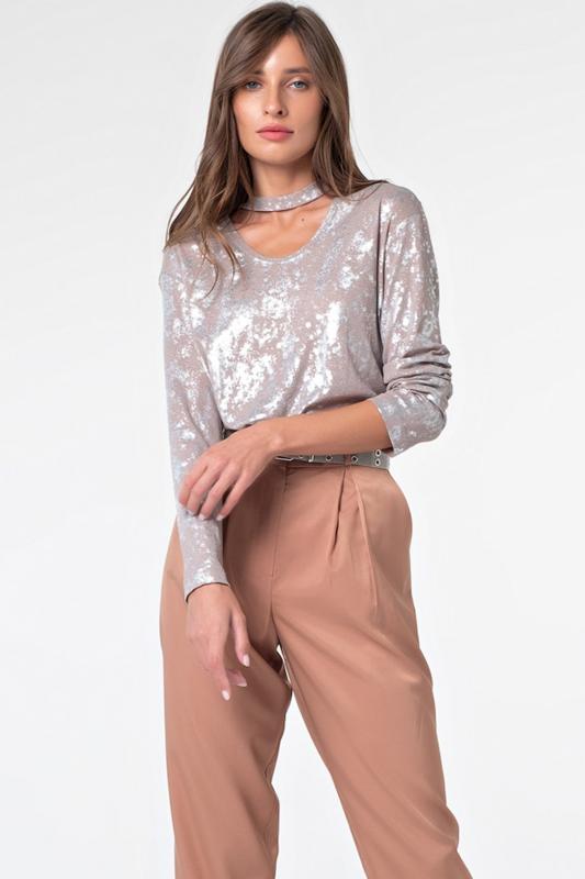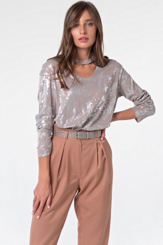 • Особенности: Блузка прямого силуэта из трикотажа с пайеткой на подкладке. По спинке застежка на пуговицу.