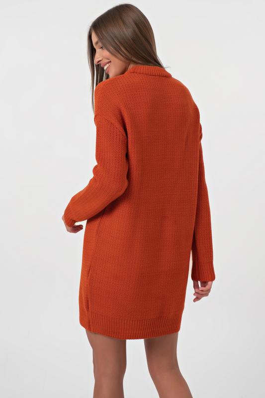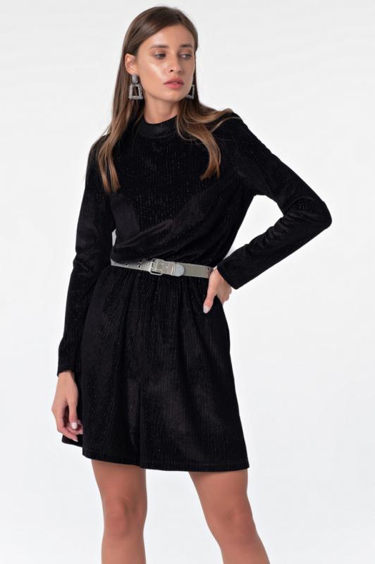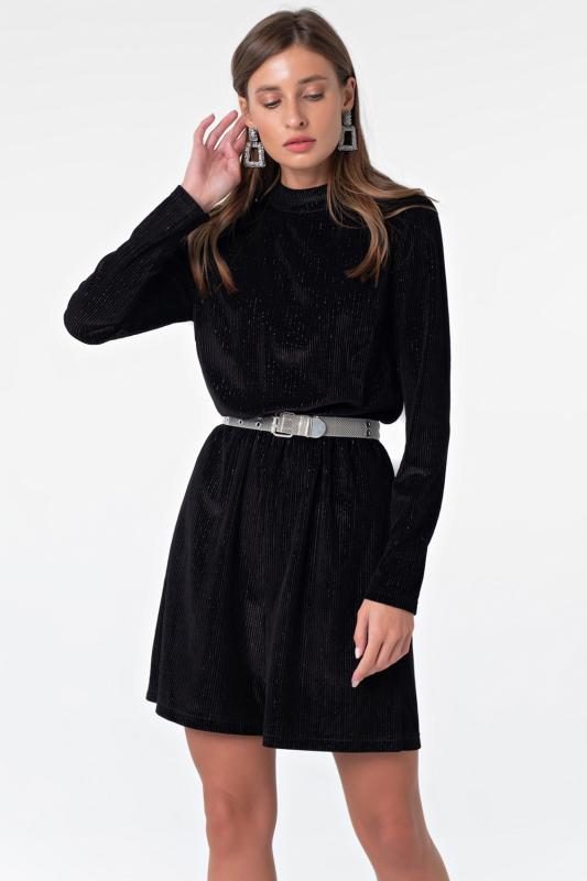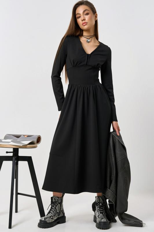 • Особенности: Платье прилегающего силуэта из трикотажа с длинным рукавом, вырез глубокий V-образный. Талия подчеркнута корсетными линиями и объемной юбкой, в боковых швах карманы