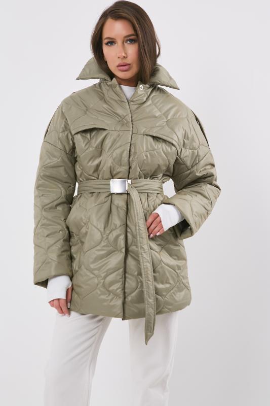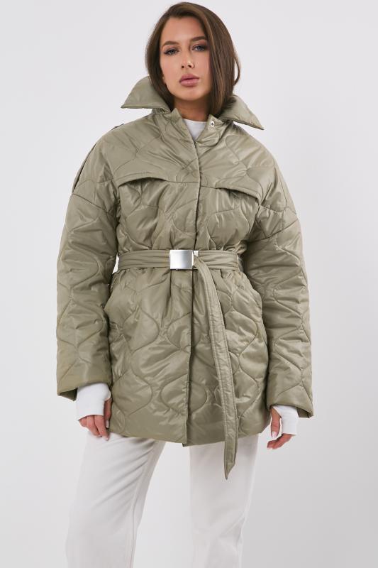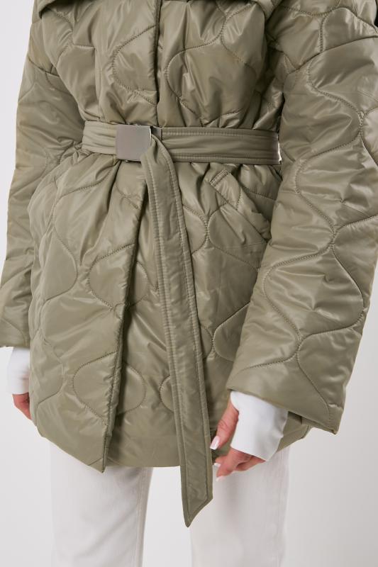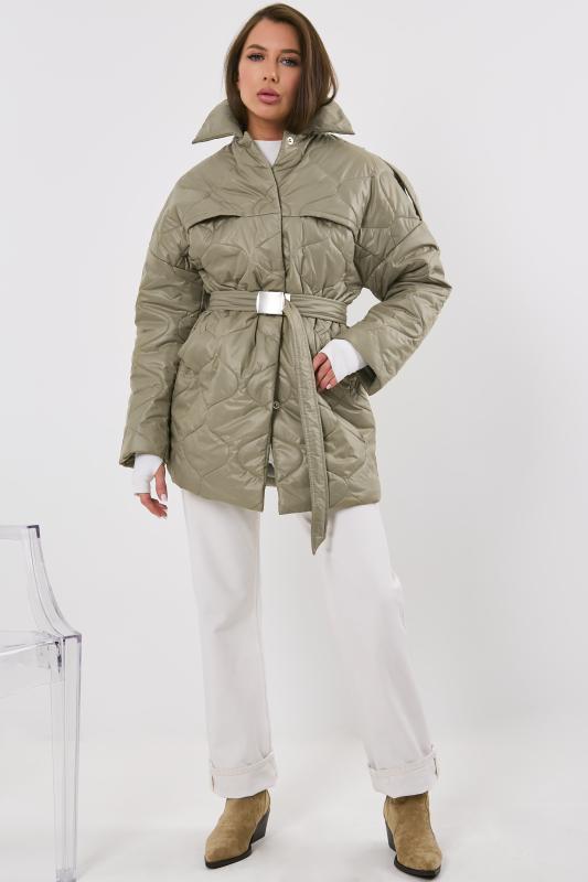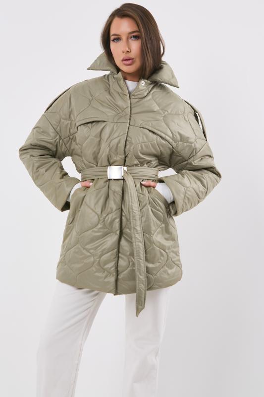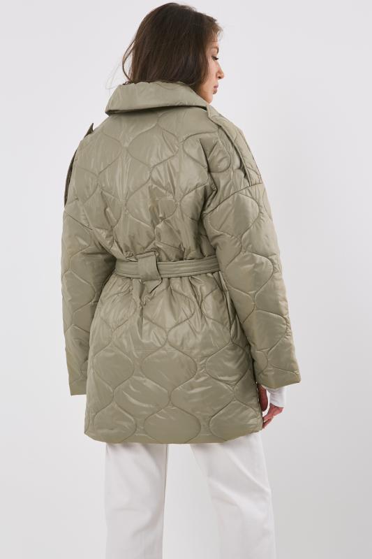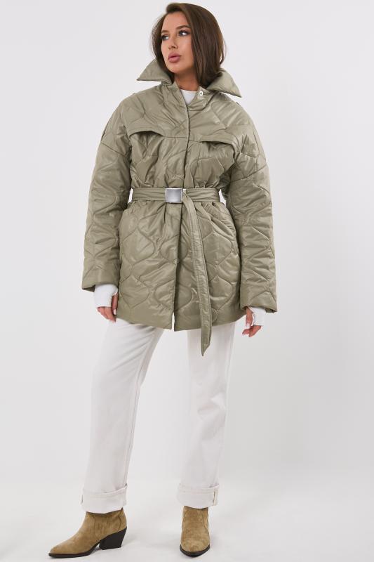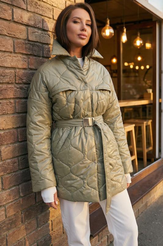 • Особенности: Полупальто из стеганной курточной ткани на подкладке прямого силуэта с поясом. Детали: отложной воротник, спущенная линия плеча, прорезные карманы с листочкой, застежка на кнопки.