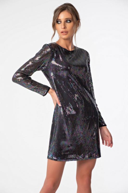 • Особенности: Платье прилегающего силуэта из плотного трикотажа. Детали: квадратная форма выреза по переду, узкие рукава-реглан, кокетка по спинке и рукава выполнены из сетки, отрезное по линии талии, вертикальные рельефные швы по переду и спинке. Без застежки.