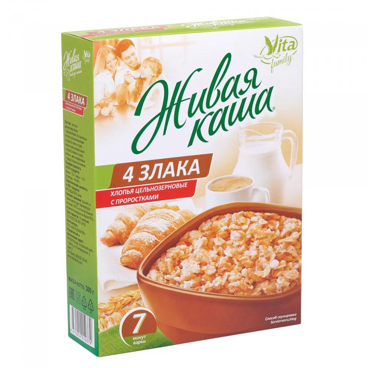углеводы-44,48 г. Энергетическая ценность на 100 гр: 208,5 ккал.- 872,9 кДж Срок годности: не более 12 месяцев. Условия хранения: хранить в чистых, сухих, проветриваемых помещениях при температуре не выше +250 С и относительной влажности воздуха не более 75%. Масса нетто: 300 гр. Отлично подходит для приготовления полезных каш, в том числе сыроедческих, гарниров и супов, киселей и отваров для детей и взрослых. Хорошо сочетается по вкусу с фруктами, орехами и овощами. Многозерновая живая каша «Vita» объединяет полезные свойства 4 пророщенных злаков – овса, ржи, пшеницы и ячменя. Пшеничные и ржаные хлопья из пророщенного зерна богаты селеном – одним из самых мощных антиоксидантов, зерно ржи отличается еще повышенным содержанием железа и фолиевой кислоты, которые