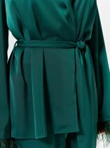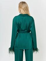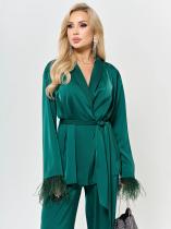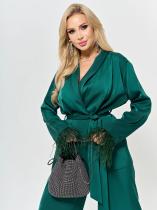 Низ рукавов декорирован съемной бахромой из перьев.