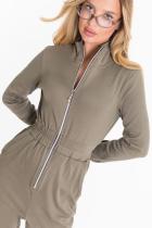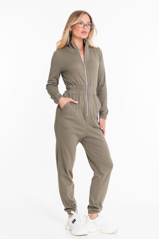 Женский комбинезон из однотонной рибаны с начёсом выполнен в лаконичном и удобном дизайне. Модель имеет застёжку-молнию спереди, воротник-стойку и длинные втачные рукава на резинке по низу. В области талии расположен широкий пояс на резинке, который обеспечивает комфортную посадку и подчёркивает силуэт. На передних половинках предусмотрены боковые карманы с притачной планкой. Низ брюк также собран на резинку, что делает изделие практичным и удобным для носки в прохладное время года.