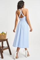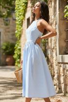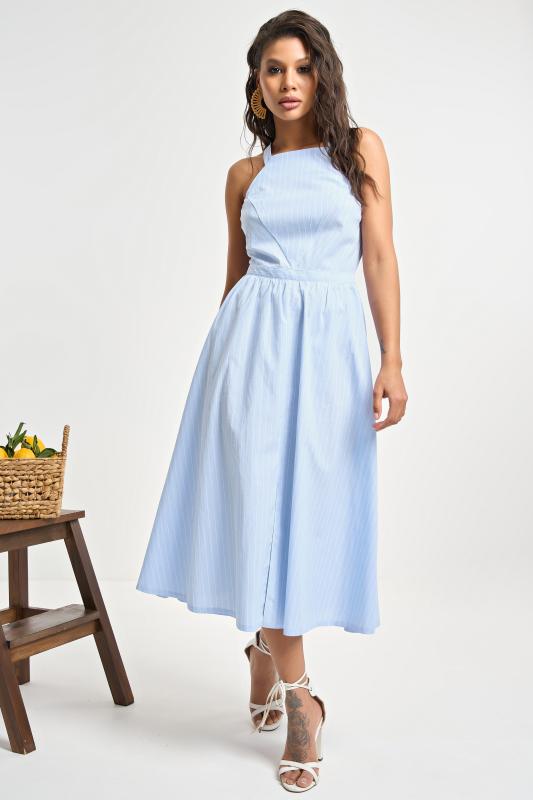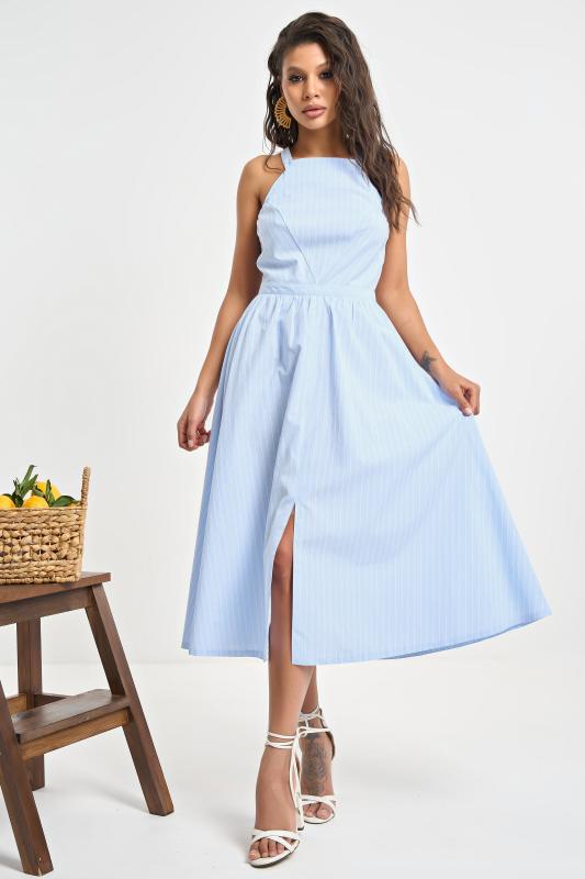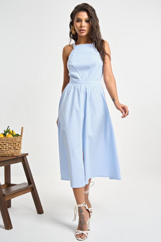Сарафан прилегающего силуэта в полоску голубой