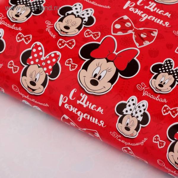 Бумага упаковочная глянцевая "С Днем Рождения", 50х70 см, Минни Маус 10 шт
