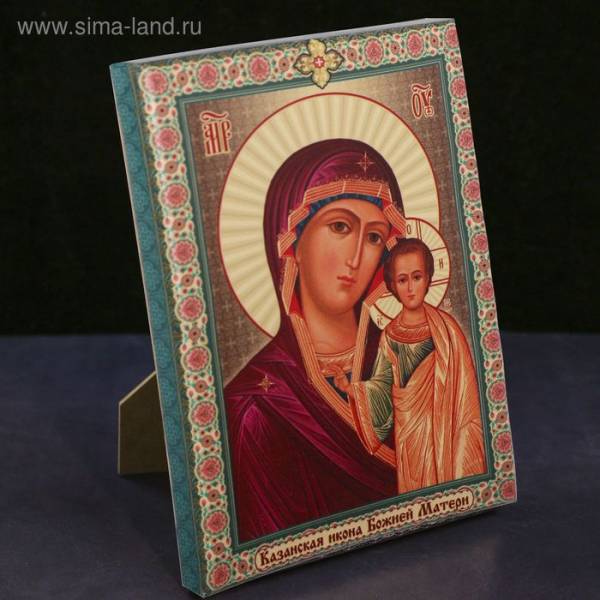 Икона-холст на подставке "Казанская икона Божией Матери" 2,5 см × 20 см × 15