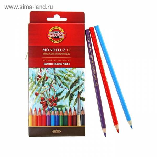 Карандаши акварельные 12 цветов MONDELUZ, европодвес