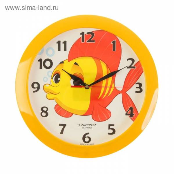 Часы настенные круглые "Рыбка", жёлтый обод, детские, 29х29 см ТР 17р.