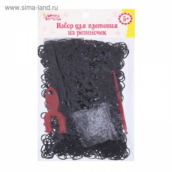 Резиночки для плетения, двойные, набор 1000 шт., крючок, крепления, пяльцы, цвет чёрный 2 набора