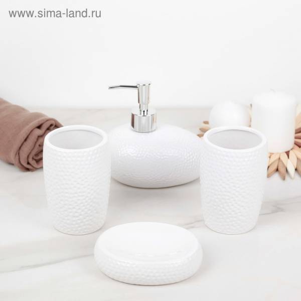 Набор для ванной "Камни", 4 предмета, цвет белый
