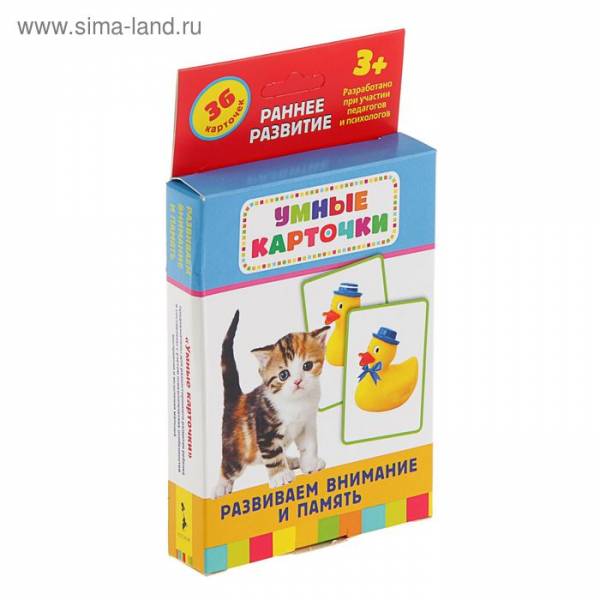 Умные карточки «Развиваем внимание и память» 36 карточек