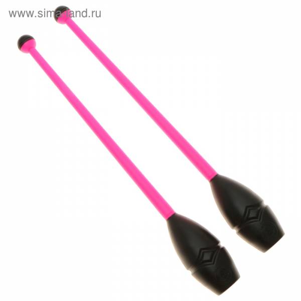 Булавы вставляющиеся для гимнастики (пластик,каучук) 41см, цвет розово-чёрный