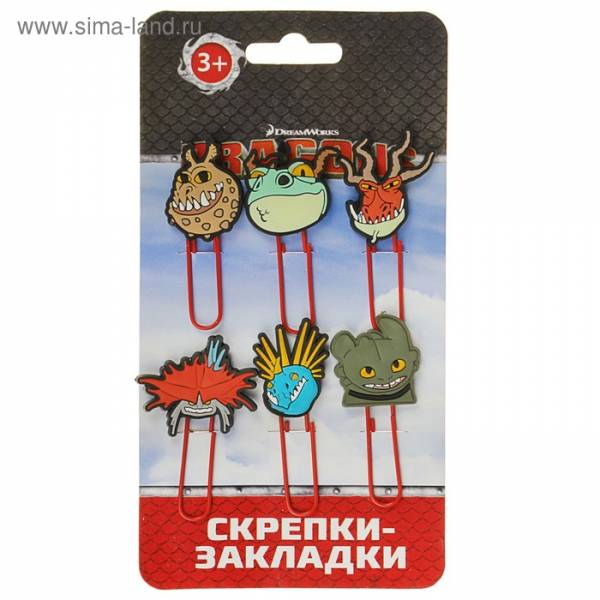 Скрепки-закладки "Драконы", 50мм, круглая резиновая вставка