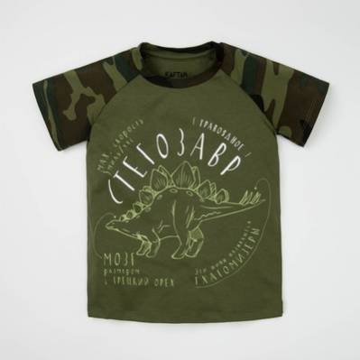Футболка "Динозавр", хаки, р-р 30 (98-104см) 3-4г 100% хл