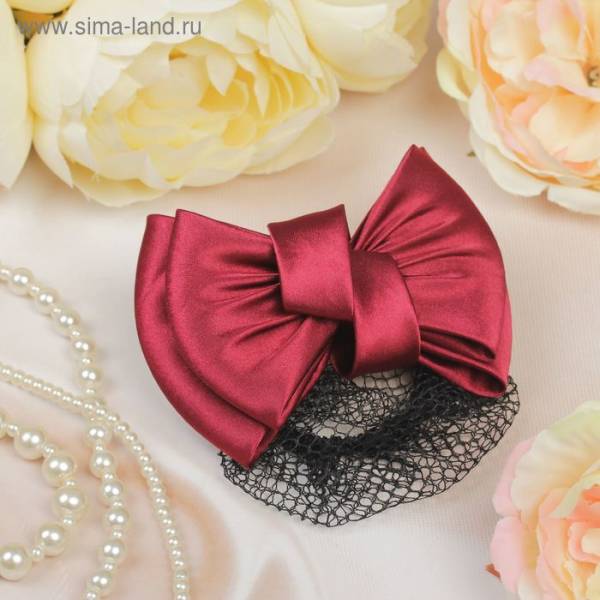 Заколка-автомат с сеточкой для пучка "Бантик" бордовый
