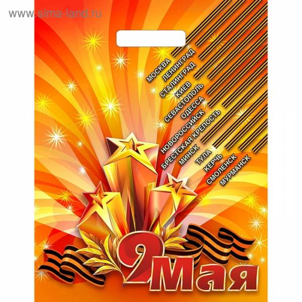 Пакет "Девятое мая", полиэтиленовый с вырубной ручкой, 40 х 31 см, 60 мкм (10шт)