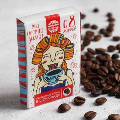Кофейные зёрна в шоколаде в коробке "Ты неотразима! С 8 Марта!"