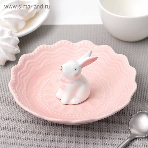 Блюдце 15 см "Кружева. Кролик", цвет розовый. ТР 8