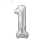 Шар фольгированный 40" Цифра 1, цвет серебряный